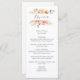 Elegante modelo com detalhes florais refinados de cor d'água em uma bela mistura de pêssego, laranja, escamudo, coral empoeirado, creme e chchampanhe, e delicado monograma floral no verso com as iniciais do casal. Fácil de preencher o modelo com o(s) seu(s) nome(s), data e descrição do menu. Se necessário, você pode usar a ferramenta do editor e fazer alterações no estilo, tamanho, posição e até mesmo cor do texto. Voltar em cor branca de fundo que pode ser alterada para qualquer outra cor que você queira usar a ferramenta do editor. Parte de nossas coleções "Peach Floral Delight" com uma variedade de produtos de coordenação disponíveis, incluindo números de tabela, cartões de assentos e etiquetas favoritas.