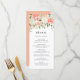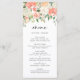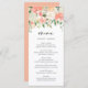 Adicione um sotaque floral elegante à sua colchete de eventos com este cartão de menu floral personalizável. Apresenta a terra floral de cor d'água, rosas de pêssego, laranja e marfim, peonias e hidrangeas com sotaque de eucalipto e verde. Personalize este cartão de menu floral adicionando os seus próprios detalhes. Este cartão de menu de aquarela é perfeito para casamentos de primavera, chás de panela, chás de fraldas e muito mais.