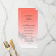 Menu de casamento de destino elegante com design de palmeira tropical em um fundo de coral brilhante com roteiro elegante e tipografia moderna. O coral do pôr do sol desaparece sobre um fundo branco. Basta adicionar seus detalhes de casamento a este menu de casamento de praia na moda tropical. Desenvolvido exclusivamente para você pelo Happy Dolphin studio.
