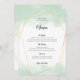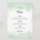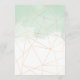 Cartões de menus para as suas mesas de casamento com um design elegante que inclui um quadro geométrico dourado e uma tipografia negra clássica. Uma lavagem da cor verde-da-menta corre ao longo do topo e do fundo, levando a uma área de fundo branca no meio, e a mesma cor-de-água cobrir parcialmente o reverso dentro de um padrão geométrico dourado. O texto é facilmente personalizado e a cor do texto pode ser alterada se você desejar, por meio da opção Clique para Personalizar mais.