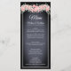 Menu de Casamento do Quadro Preto. Bonito menus de casamento em quadro negro com texto branco no quadro negro com fundo preto adornado com um impressão de cor d'água pintado à mão em tons de rosa, coral, verde, azul empoeirado e azul-cinza. Personalize com seus detalhes de casamento. A parte de trás é clara, porém, você pode personalizá-la de qualquer maneira que escolher usando as ferramentas fornecidas nos menus de personalização e personalização do Zazzle. Visite nossa loja, Austen & Grace, para ver nossas faixas cada vez maiores de designers, e entre em contato conosco se você precisar de produtos adicionais correspondentes ou qualquer assistência via botão de contato ou e-mail diretamente em contact@austenandgrace.com