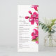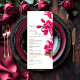 Magenta, rosas selvagens com um pouco de confete de ouro, menu de casamento com modelos personalizáveis.