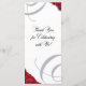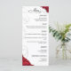 O Flourish Rosa vermelha Wedding Menu elevará a sua recepção com este elegante menu do rosa vermelha com sotaques florais românticos e rosas caligrafias graciosas. Perfeito para casamentos modernos, clássicos ou formais, este cartão de menu personalizável destaca seus aperitivos, entradas, sobremesas e cocktails de assinatura no estilo. Impresso em estoque de cartolina de alta qualidade, ele adiciona um toque polido e personalizado à decoração da mesa de casamento. Este cardápio de casamento floral é muito parecido com convites, programas e cartazes correspondentes para uma suíte coordenada de papelaria de casamento. O estilo clássico é perfeito para Primavera de casamentos, Verão, outono ou inverno!