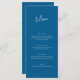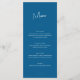 Um cartão de cardápio de casamento simples e elegante em azul e branco. Apresentando uma fonte de script manuscrita emparelhada com texto moderno limpo. Personalize o texto e as cores de fundo para ajustado do seu tema de casamento exclusivo. Este convite é adequado para cerimônias e recepções de casamento modernas, modernas ou elegantes. Preencha a papelaria do casamento com o resto da nossa Coleção de Casamentos Manuscritos Mínimos Modernos.