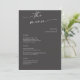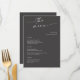 Imprima seus convidados com o Menu de Casamento de Script de Caligrafia Moderna BLAIRE. Feito com elegante caligrafia e design contemporânea, este menu adiciona um toque de sofisticação à sua recepção de casamento. Perfeito para mostrar sua refeição de casamento ou seleção de bebidas, ela complementa sem interrupção qualquer tema de casamento moderno ou clássico. Personalizável para ajustado do seu esquema de cores e opções de menu, este cartão de menu na moda aumenta a experiência de jantar e deixa uma impressão duradoura nos seus convidados.