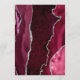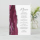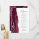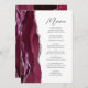 Este elegante cardápio moderno de casamento apresenta uma cor vermelha e borrifada, borda agitada com falso brilho prateado. O texto personalizável combina o script de escrita manual de cinzas de carvão e as fontes sans serif em um fundo branco. O design de burgata e agata prateada é repetido do lado oposto.