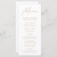 Elevem sua recepção de casamento com nosso belo cardápio de casamento, apresentando um elegante guião de ouro manuscrito em um fundo branco limpo. Perfeito para casais que buscam um olhar simples, mas sofisticado, este design moderno permite personalizar com seus nomes, data de casamento e ofertas de menus. Seu estilo minimalista complementa sem esforço qualquer tema de casamento, adicionando um toque de elegância ao seu dia especial. Faça uma impressão duradoura em seus convidados com um menu que reflita a simplicidade quica de sua visão de casamento.