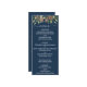 Avise aos seus hóspedes o que está no menu da sua recepção de casamento usando este menu de temas do casamento azul-marinho azul elegante.