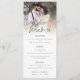 Menu de Casamento Elegante de Script de Sobreposição de Fotos Moderna. Uma tipografia informal em preto para o título principal Menu que complementa o resto do texto que você pode facilmente personalizar. Substitua a foto de exemplo pelo seu favorito.
