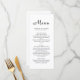 Melhore sua experiência de jantar de casamento com nossos Cartões de Menu Simples de Casamento de Script Minimalista Limpo! Apresentando uma elegante caligrafia de script para títulos e texto preto nítido em um fundo branco pristine, essas placas combinam a legibilidade com a sofisticação subestimada. Totalmente personalizável com seus itens e nomes de menu, este design minimalista complementa sem problemas o seu pacote de papelaria de casamento. Disponíveis como cartões impressos, eles oferecem elegância prática para os casais modernos. Combine o seu tema sem esforço e, ao mesmo tempo, garanta que os hóspedes saboreiem todos os detalhes da sua celebração.