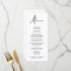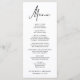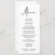 Menu Chic para sua recepção de casamento, festa de noivado, janto de ensaio e outras celebrações com "Menu" em um roteiro moderno, seu menu personalizado em uma simples tipografia, e seus primeiros nomes e data de evento em uma elegante tipografia serif.