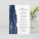 Este elegante cardápio moderno de casamento apresenta uma cor azul-d-água marinho, borda agitada com falso brilho prateado. O texto personalizável combina o script de escrita manual de cinzas de carvão e as fontes sans serif em um fundo branco. O design de agata azul e prateado do marinho é repetido no verso.