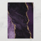 Este elegante cardápio moderno de casamento apresenta uma cor d'água púrpura e borda agitada com brilho de ouro falso. O texto personalizável combina o script de escrita manual de cinzas de carvão e as fontes sans serif em um fundo branco. O design de agata roxo e dourado é repetido no verso.
