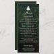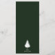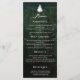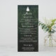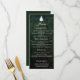 Um cartão de cardápio de casamento rústico com uma fotografia de floresta cênica de Destei e uma simples silhueta de árvore de abeto no topo para um toque de sensação de floresta. O título elegante do roteiro diz "Menu" com quatro seções abaixo, ideais para listar aperitivos, cursos principais, sobremesas e bebidas. O verso oferece um fundo verde com a silhueta de árvore de abeto correspondente e uma área de texto personalizável para os nomes do casal e a data do casamento. Uma escolha perfeita para recepções de casamento ao ar livre, florestais, caminhadas ou inspiradas na natureza.