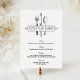 Cartões de menu jantados inspirados em Vintage apresentam um esquema monográfico de estilo art deco design da noiva e do noivo com silverware decorativo (garfo, faca, colher), um esquema clássico de cores preto e branco, e listras negros e brancas no verso do cartão.