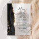 A borda esquerda deste elegante cardápio moderno de casamento apresenta uma coloração aquosa preta, borda agitada, aparada com falso brilho dourado. A sobreposição de texto personalizável combina o script de escrita manual em preto e as fontes de impressão sobrepostas a uma fotografia vertical da sua escolha. Uma tela branca cria um efeito suave e ajuda a trazer o texto para fora. O reverso é sólido fora do preto.
