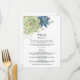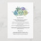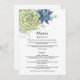 Menu de casamento de arte suculenta com aquarelas personalizável para suas especificidades de evento.