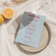 Um retro fedorento, moderno e brilhante menu de janto de casamento. Que apresenta modelo de chic de boho vintage fundo azul-céu e tipografia magenta vermelha e menu escrito à mão em vermelho. Perfeito e compatível com toda a suíte.