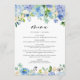 Menu Casamento de Watercolor Blue Hydrangea Garland