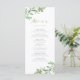 Menu de Aquarela Verde e Flores Brancas | Adicione um sotaque verde à sua capa de tabela com este cartão de menu verde personalizável. Apresenta ilustrações de aquarela e padrão de folhagem e flores brancas. Este cartão de menus floral é perfeito para casamentos de primavera e jardins e outros eventos.