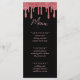 Menu de recepção de casamento com brilho dourado rosa preto e rosa. Personalize-o com a sua lista de refeições.