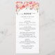 Este elegante menu de casamento mostra buquês florais de aquarela em tons de pêssego e rosa. Fácil de personalizar clicando em "Personalizar".