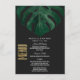 Folha monstera de queijo suíço elegante, moderno e simples, verde-aquoso, cor tropical, em fundo preto, com cartazes de cardápio de recepção de casamento de Verão, imprimidos em folha de ouro. Este design clássico e sofisticado é perfeito para a recepção de casamento clássica, na moda e de tendências. Personalize com seu próprio menu na frente, junto com seus nomes e datas. Então personalize o dorso com seu monograma inicial. Todas as impressão de fotos.
