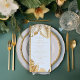 Apresente os cursos do seu banquete de casamento com o nosso "Menu Casamento de Monstera Dourada Gilded", uma peça impressionante que encapsula a essência do jantar opulente. Adorado com folhas luxuosas de monstera de ouro sobre um fundo intocado, esse cardápio traz um toque dos trópicos a uma elegante mesa. A design esplêndida reflete a grandeza do seu evento, harmonizando-se com o destino e com temas de casamento tropicais. Esse cardápio transcende seu uso prático; é uma peça de arte, convidando hóspedes a participar da jornada culinária que aguarda. As opções personalizáveis de fontes e cores oferecem versatilidade para combinar com a paleta única do seu casamento, garantindo uma combinação perfeita com a sua estética geral. As folhas de monstera douradas com aspecto de folha de alumínio adicionam uma textura e profundidade ricas que prometem encantar e deliciar seus convidados. Direcionando casais recém-engajados, discernindo planejadores de casamento, e aqueles sonhando com um luxo, ambiente tropical, este cartão de cardápio de casamento é o detalhe final que completa uma suíte de casamento organizada. Cada curso detalhado neste cartão será uma promessa dos gostos requintados a serem vistos, elevando a antecipação a novas alturas. Invista neste detalhe dourado para seu dia especial e saboreando a mistura de sofisticação e elegância tropical que ela traz ao seu cenário de mesa. Aqui é onde sua história de amor, celebração e gosto impecável culmina num banquete visual.