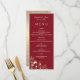 Elegante, boho, moderno menu de casamento floral de ouro desenhado pela mão e vermelho de burgundy com simples roteiro de caligrafia.