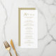Placa de Menu de Script Minimalista Dourada | Cartão de menu Elegante e de na moda com escrita química, tipografia clássica com padrão de listras. Personalize adicionando seus próprios detalhes. Este cardápio será perfeito para casamentos, graduações, festas de aposentadoria e muito mais. Itens correspondentes e outras cores estão disponíveis.