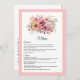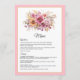 Menu de casamento floral cor-de-rosa e dourado personalizável para as suas especificações de evento.