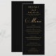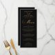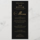Escuridão Dourada do Elegante e Menu Casamento do Groom. Uma bela tipografia dourada a preto. Personalize com o nome da noiva e do noivo e o menu de casamento. Visitamos nossa loja, Austen & Grace, para ver a suíte de casamento de cheio, produtos correspondentes e muito mais. Entre em contato conosco se você precisar de assistência por meio do contato do Zazzle com o botão do designer ou por e-mail diretamente em: contact@austenandgrace.com