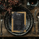 Traga seus convidados para um mundo de elegância escura e encantadora com nosso cartão de cardápio de casamento gótico. O fundo amarelo profundo, envelhecido, e os rosas pretos formam o palco de um contraste impressionante, à medida que o texto branco em negrito emerge de intrincadas caixas de texto pretas. O dorso é enfeitado com duas videiras entrelaçadas de rosas pretas, bem como as iniciais do casal e a data do casamento, o que acrescenta um toque de fastidioso prazer. Liberte a magia e dê o tom para um dia de casamento inesquecível. Este cartão faz parte do Criado pela "Simply Farmhouse Press".