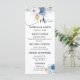 Este belo cartão de cardápio apresenta cor d'água azul empoeirada, branco, ouro, flores de rosa, eucalipto dourado e um roteiro manuscrito de "Menu". Personalize com seus detalhes de casamento e encontre designs correspondentes na minha loja "DreamHut".