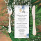 Menu Casamento Dourado Floral Branco Dusty Blue