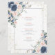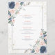 Menu Casamento Dourado Floral Cor-de-rosa-rosa-claro-az