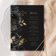 Menu Casamento Dourado Romântico Preto Escuro Floral Ro