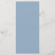 Este cartão de menu com monograma apresenta um conjunto de fontes contemporâneas em azul empoeirado, contra fundo de marfim chico. A mesma cor azul é repetida na parte traseira da placa. O modelo inclui 4 seções de refeições e bebidas. Mais cores disponíveis na mesma coleção.