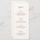 Menu de casamento moderno com um simples design com uma combinação de uma fonte sans serif contemporânea, um roteiro elegante e uma fonte itálica.