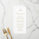 Estes modernos menus de ouro minimalista e casamento branco irão adicionar um toque de elegância aos seus locais de recepção. Este simples modelo de design apresenta um script dourado falso com letra manual que diz "Menu". Personalize suas seleções de menu. Se precisar de ajuda para personalizar este menu, por favor, envie-me uma mensagem através do Zazzle. Obrigado. Desenhada pela artista Susan Coffey.
