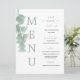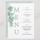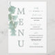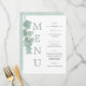 Eucalyptus verde deixa design floral de casamento no seu grande cardápio de casamento personalizado. O fundo é um verde macio com textura marmoreada. Um design de folha personalizado com suas informações facilmente mudou para personalizar seu papel de carta de casamento. Papel de carta de casamento pessoal de Apenas Designs Finos.