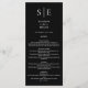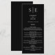 Este menu de casamento preto e branco pode ser personalizado com as iniciais do seu monograma e as informações do menu do casamento em tipografia elegante. Criado por Thisisnotme©
