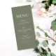 Melhore sua recepção de casamento com o "Menu de Casamento Elegante Minimalista do Green Sage". Este cartão de menu, maravilhosamente projetado, apresenta tons suaves de sábio verde e um layout limpo e minimalista, fazer-o como uma adição perfeita à sua configuração de mesa de casamento. Ideal para mostrar suas opções de refeições cuidadosamente curadas, a elegante design complementa uma variedade de temas de casamento, da rústica à moderna. Imprima seus convidados com este na moda e cardápio sofisticado, acrescentando um toque de luxo subestimado ao seu dia especial.
