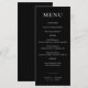 Menu de Casamento Elegante Negro Moderno com roteiro branco. Personalize-o com suas informações. Exibir a coleção correspondente.