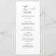 Elevem a sua recepção com este Menu de Casamento Elegante Negro e Branco Minimalista, o toque perfeito para um casamento moderno e eterno. Apresentando um elegante design preto-e-branco com tipografia elegante, este cardápio complementa qualquer estilo de casamento — desde comemorações de cidades quicas a cerimônias românticas do campo. Impresso em papel de qualidade superior, este menu personalizável permite destacar seu primeiro curso, entrada, sobremesa e seleções de bebidas em um layout perfeitamente limpo que os convidados adorarão. Seu design simples, porém sofisticado, é perfeitamente compatível com convites correspondentes, programas de cerimônia, números de tabelas, placas RSVP e placas obrigado-você para um pacote completo de artigos de papelaria. Perfeito para casais que querem uma recepção luxuosa, mas subestimada, que nunca sai do estilo.
