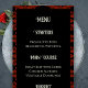 Menu Casamento Elegante Preto e Vermelho Floral Gótico