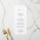 Menu de casamento clássico com um simples design com seu monograma e o título em uma caligrafia elegante.