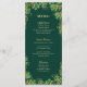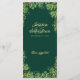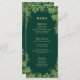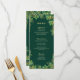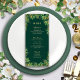 Esses menus esmeraldas verdes e dourados do janto de casamento apresentam elegantes eucaliptos verdes em ambos os lados. Digite seus nomes, data e cursos para criar os menus de casamento de na moda para um casamento de joias de tema botânico em primavera, verão ou outono.