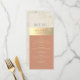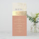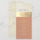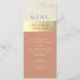 Adicione um toque elegante ao seu casamento com este cardápio de casamento moderno boho, projetado em uma paleta de terracota em tons de pêssego. Acentuado com renda floral dourada vintage e caligrafia simples, este design moderno combina sofisticação com charme caprichoso. Perfeito para casamentos rústicos, boêmios ou românticos, é uma maneira linda de apresentar seu cardápio com elegância e personalidade.