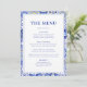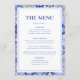 Traga seus convidados de casamento para o coração do México com nosso cardápio de casamento com o tema da Talavera Azul. Esta elegante e moderna design, inspirada pela beleza da cultura Espanhol-Mexicana, adiciona um toque de charme exótico à sua celebração de casamento de destino. Personalize seu cardápio para mostrar os pratos deliciosos que irão deleitar seus entes queridos, e infundir seu casamento com as matizes vibrantes e a riqueza cultural de uma festa espanhola. Com este na moda e cardápio único, sua celebração será uma festa para lembrar, combinando elegância e tradição em um pacote encantador.